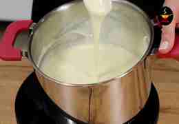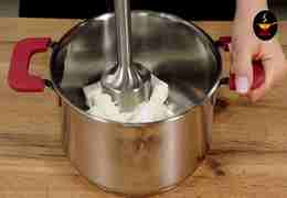 Продолжаем прогревать массу ещё 2-4 минуты. Сыр должен стать полностью однородным. Если вдруг остались мелкие комочки – ещё раз быстро пройдитесь блендером прямо в процессе варки.