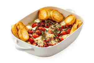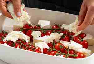 Запекать 20-25 минут. Блюдо готово, когда сыры станут мягкими, а помидоры подрумянятся.