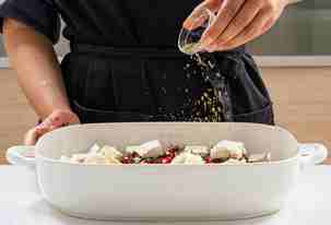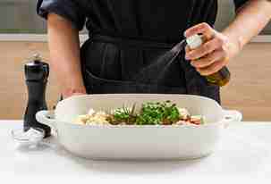 Посолить, поперчить и сбрызнуть все оливковым маслом.