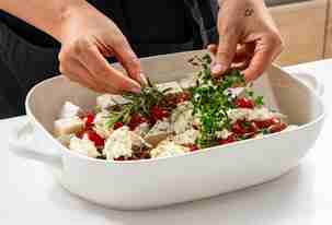 Сверху выложить веточки тимьяна и розмарина.
