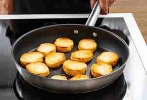 В это время подсушить на сковороде или в тостере ломтики багета.