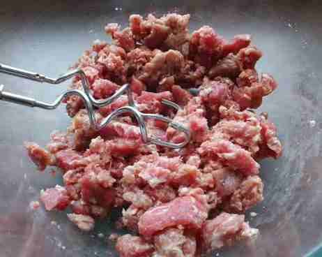 оборотах, понемногу добавляя воды, потом на максимальной скорости. Готовый фарш должен стать тягучим.