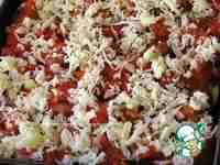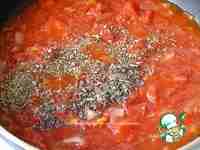 Влейте томат, перемешайте. Добавьте орегано и шалфей. Готовьте минут пять на среднем огне, помешивая.