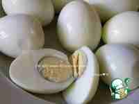 Яйца очистите, разрежьте пополам. Аккуратно выньте желтки.