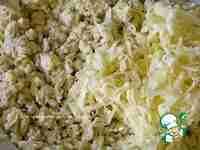 Разомните желтки вилкой вместе с молоком. Добавьте половину тертого сыра, измельченный чеснок, посолите, поперчите и перемешайте.
