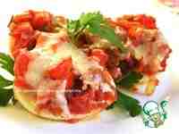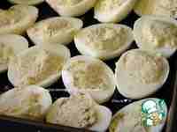 Половинки яиц наполните полученной массой и выложите в форму для запекания, смазанную маслом.