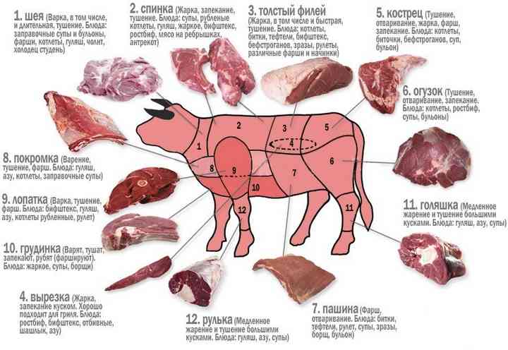 «тонкое место» — находится у задней части туши. Представляет собой нежное мясо,