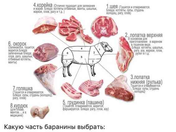 Для плова — заднюю ногу, переднюю ногу, шею, ребрышки.